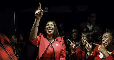 NY州初のアフリカ系司法長官となるジェームズ氏(中央)。本人のツイッター(@TishJames)より