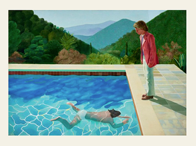 Portrait of an Artist (Pool with two figures) 1972-acrylic on canvas 84×120 in.