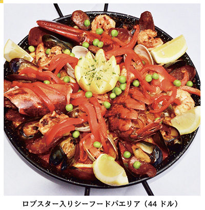 しっとり柔らかい「タコのグリル(16ドル)」や、チョリソ、コロッケなど日本人になじみ深いタパスがいっぱい。ワインや8種のサングリアと相性抜群のパエリアは人気の看板メニュー。宴会プランの相談も気軽に。