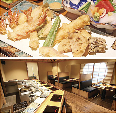 日本で厳選、空輸した旬の魚介類や野菜を使用。極薄の衣でサクっと揚げた後味さっぱりの天ぷらで、ミシュラン4年連続「星」を獲得した。特等席は下ごしらえから揚げまで、熟練の職人の手技が見えるカウンター。
