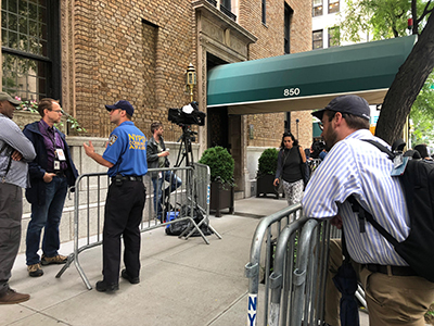 スペードさんの自宅が入るビル前に集まる報道陣(photo: Yuriko Anzai / 本紙)