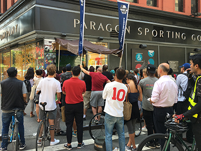 路上で観戦するニューヨーカー(photo: Asami Kato / 本紙)