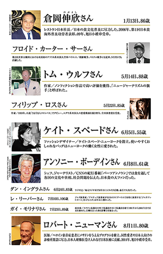 トップSPECIALOBITUARY 2018に亡くなったニューヨークの著名人