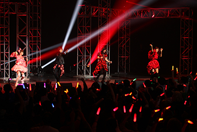 1日目のフィナーレ。4人で「涼宮ハルヒの憂鬱」劇中歌「God knows…」を熱唱(photo: Mayumi Nashida)