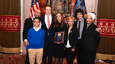 ペラルタ議員の家族らと記念撮影するクオモ氏(左から3番目)。本人のツイッター(@NYGovCuomo)より