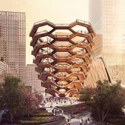 マンハッタン区に今月15日にオープンしたニューヨークの新名所「ハドソンヤード」に設置された蜂の巣形の公共スペース「ベッセル」を運営するERYベッセル社はこのほど、利用者がSNSに投稿した写真やビデオの著作権を同社が所有するとした条項を修正した。著作権は撮影者に帰属するとしている。