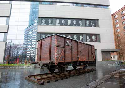 3月29日、ナチスがユダヤ人を運搬するのに使った木製の貨車が同博物館前に設置された。博物館によると、同展では回収されたユダヤ人の私物の他、400枚に及ぶ写真を展示。他にも収容所のフェンスのかけら、ナチス幹部のルドルフ・ヘスが使っていたデスクや私物、ナチス親衛隊(SS)が使ったガスマスクなども見られる。