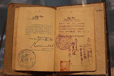 これに加えて、同博物館が保管する物品や資料100点以上も併せて展示。ニューヨークとその近郊に逃れてきたユダヤ人らが受け継いできたものだという。中には杉原千畝が発給し多くのユダヤ人を救った「命のビザ」もある。