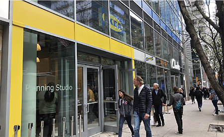 家具販売大手のイケアが15日、マンハッタン区3番街59丁目に全米初の都心型店舗「イケア・プラニング・スタジオ」をオープンした。都心の暮らしに役立つ商品を中心にそろえ、宅配サービスも提供する。米国の他都市に比べて家賃が高く、ワンルームやルームシェアで暮らさざるを得ないニューヨーカーの意見も取り入れ、狭い空間でもスタイリッシュかつ快適に暮らせるアイデアも詰め込んだ。同社は今後3年で、同様の店舗を世界の都市部に30店開く計画。