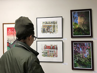友人に誘われ初めて訪れたという写真スタジオ勤務の坂本たくやさんは、「気になる作品がいくつかある。完成した作品が持つ力に触発された」と話した。