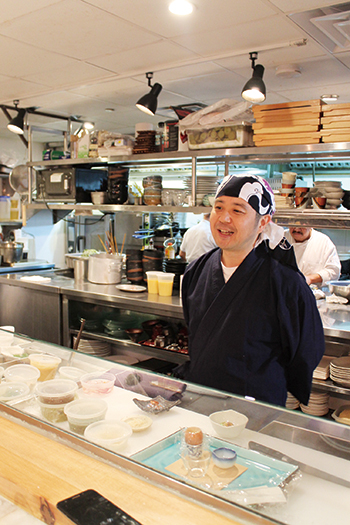 タイムズスクエアの喧騒を背に歩くこと数分。レストラン街に佇む「寿司石」は江戸前に独自の解釈を加えた創作すしで知られる名店。この店が最近、割烹カウンターで旬の料理を食べさせると聞き、早速足を運んだ。
