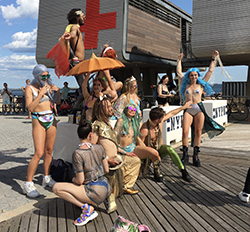 前日の雨から打って変わって快晴となった22日、ブルックリン区コニーアイランドに海の生き物たちが大集合、夏の到来を祝った。ニューヨーク市内のみならず全米から集まった参加者は3000人以上。思い思いの姿に仮装し、ボードウォーク前のサーフ街を練り歩いた。