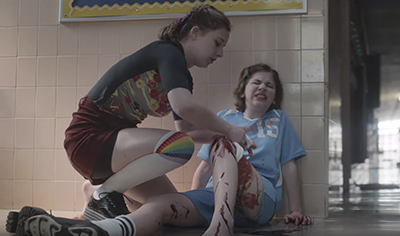 CMは新学期のために買ってもらったリュックをうれしそうにロッカーから取り出す男子生徒から始まる。他の新学期のCMと変わらないように見えるが、CMが進むにつれ銃声や悲鳴が鳴り響き、スケートボードで窓を割って校舎から逃げ出す男子生徒、足から血を流す友人を靴下を使って止血する女子生徒など、驚愕のシーンが続く。
