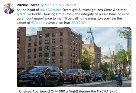 公共住宅の監視と調査を行う委員会の議長、リッチー・トレス市議会議員(民主)は12日、自身のツイッターで、公共住宅からどれだけの部屋がエアビーにリスティングされているかを究明する公聴会を開くと述べた。