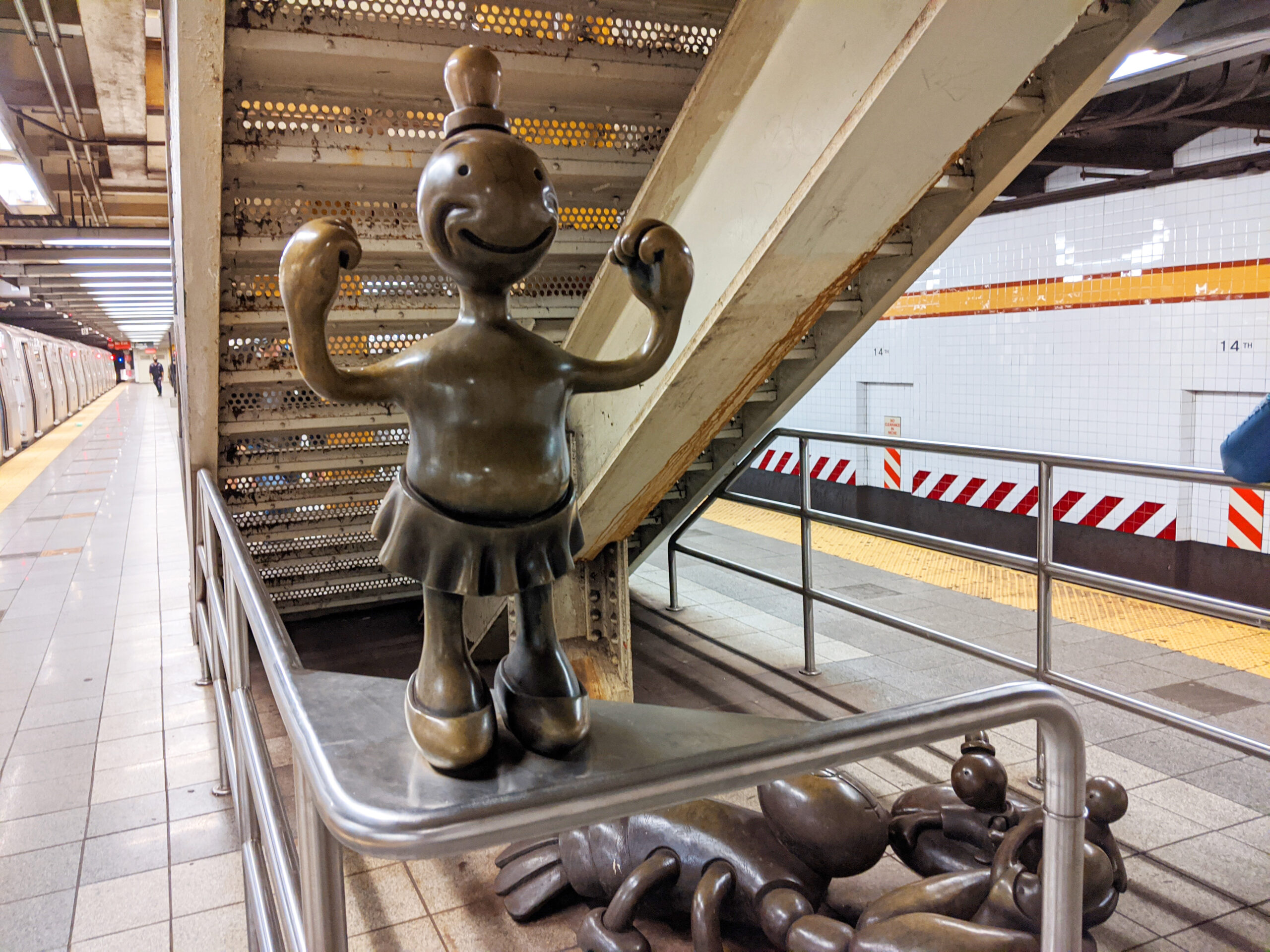 NYマンハッタン区14ストーリート・8アベニューの地下鉄駅では、彫刻家のトム・オターネスのユーモラスで遊び心のある作品がたくさん隠れています♪🎨