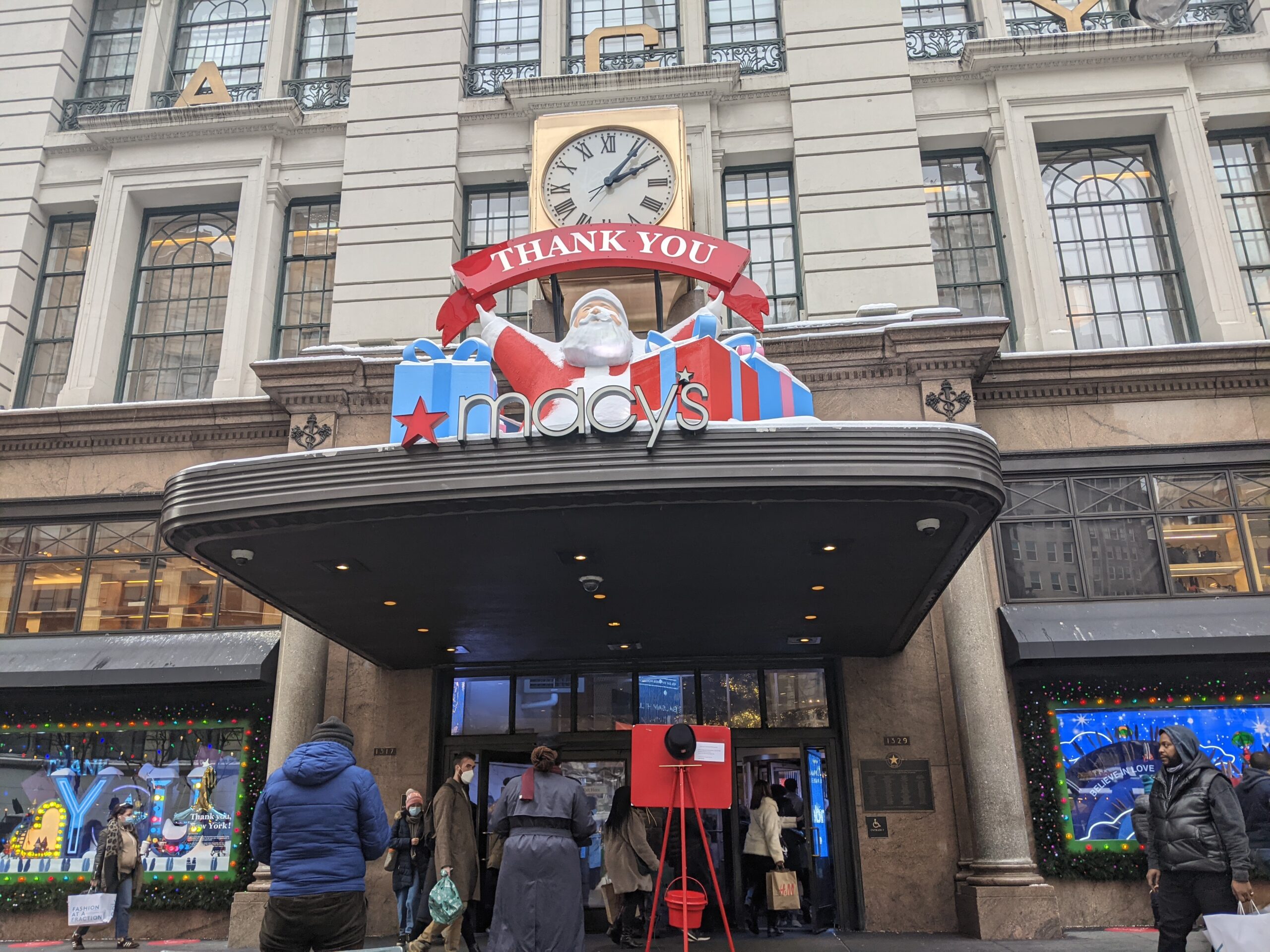 入り口でサンタがお迎えする34丁目のメーシーズ旗艦店🎅🎄