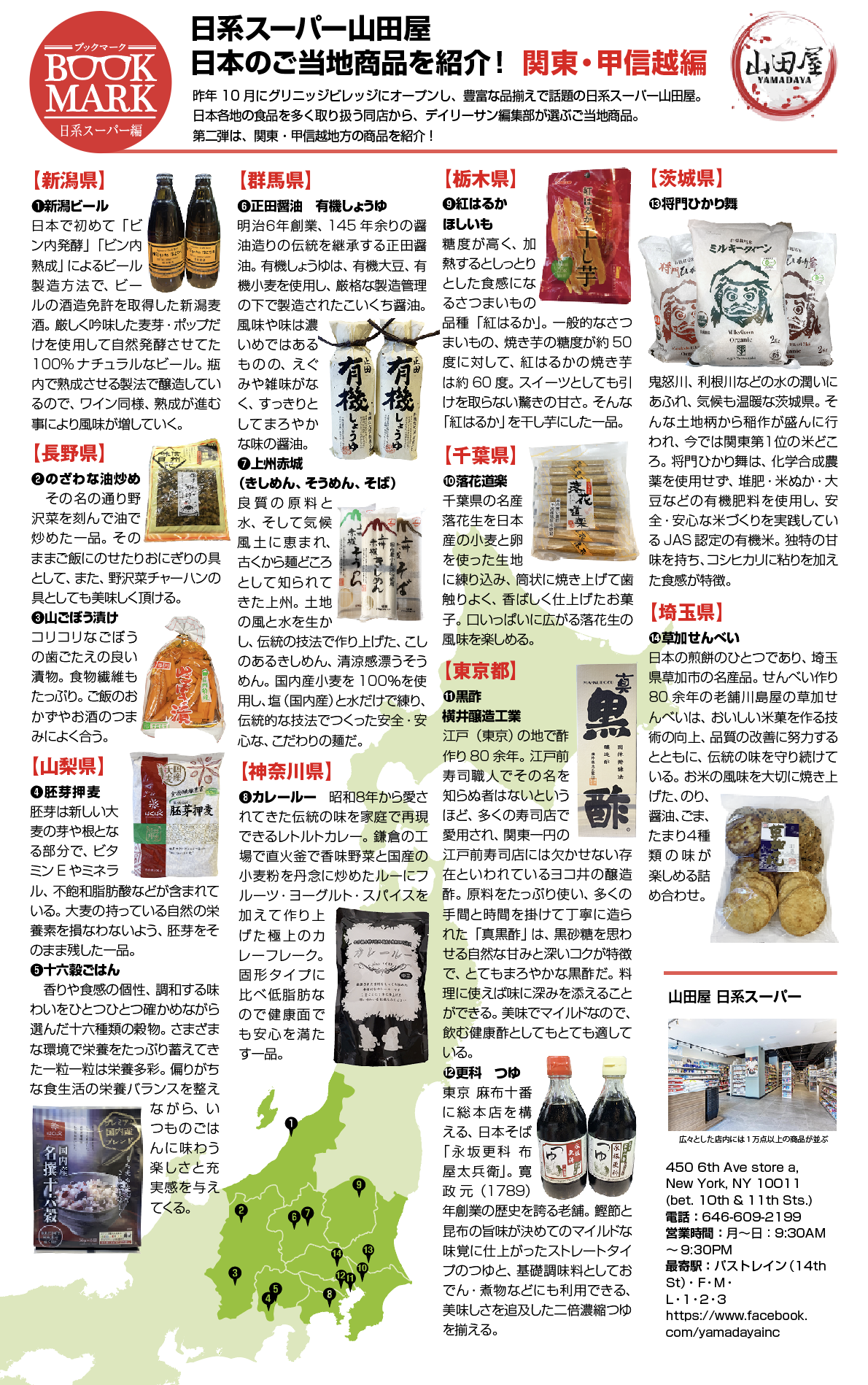 昨年 10 月にグリニッジビレッジにオープンし、豊富な品揃えで話題の日系スーパー山田屋。 日本各地の食品を多く取り扱う同店から、デイリーサン編集部が選ぶご当地商品。