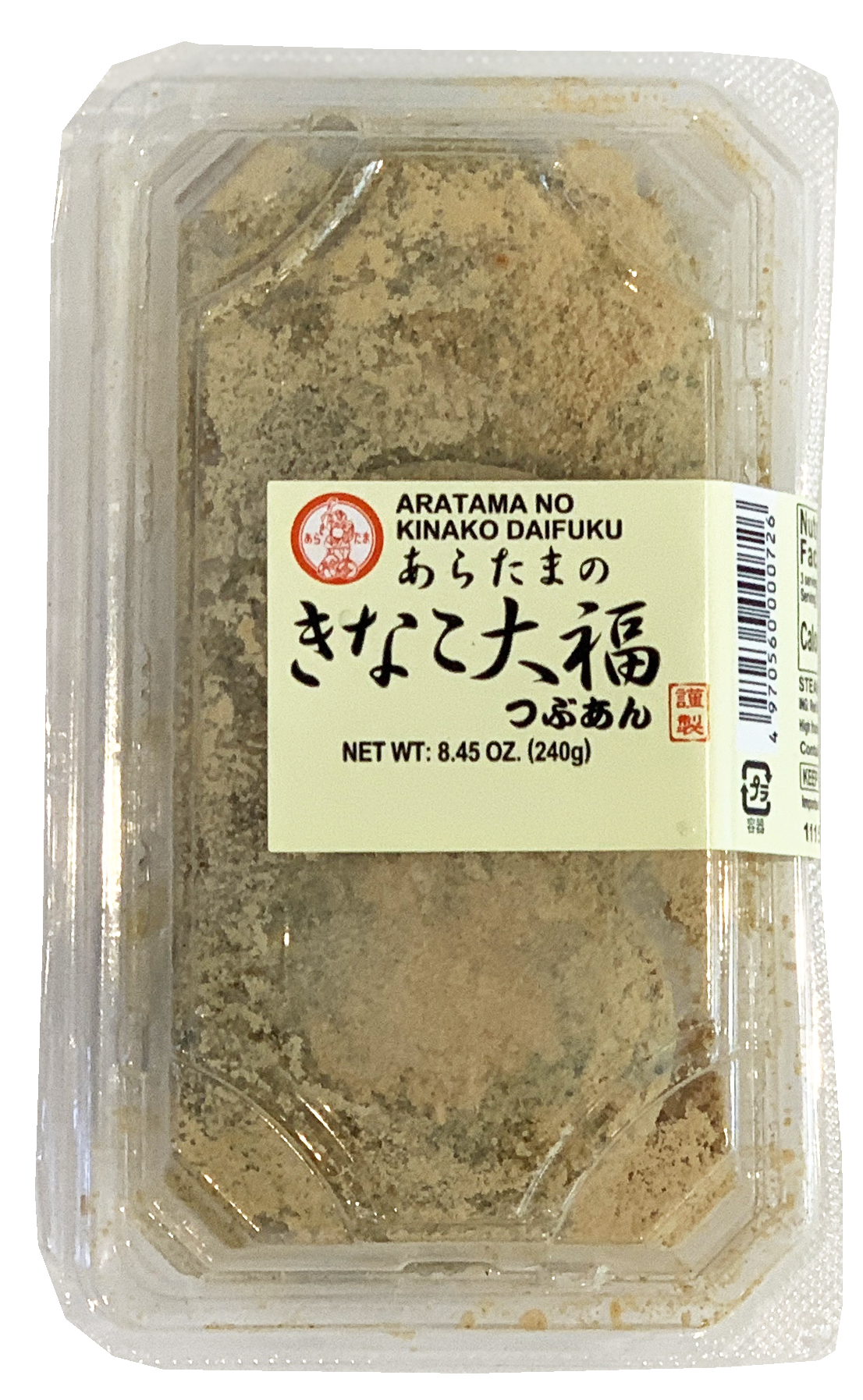 1977年国内業者ではじめて、北米、中近東向けに大福餅の輸出を開始した製菓会社の新珠食品。きなこ大福はその名の通り、特製のつぶあんを、もちで包みたっぷりのきなこをまぶした大福。
