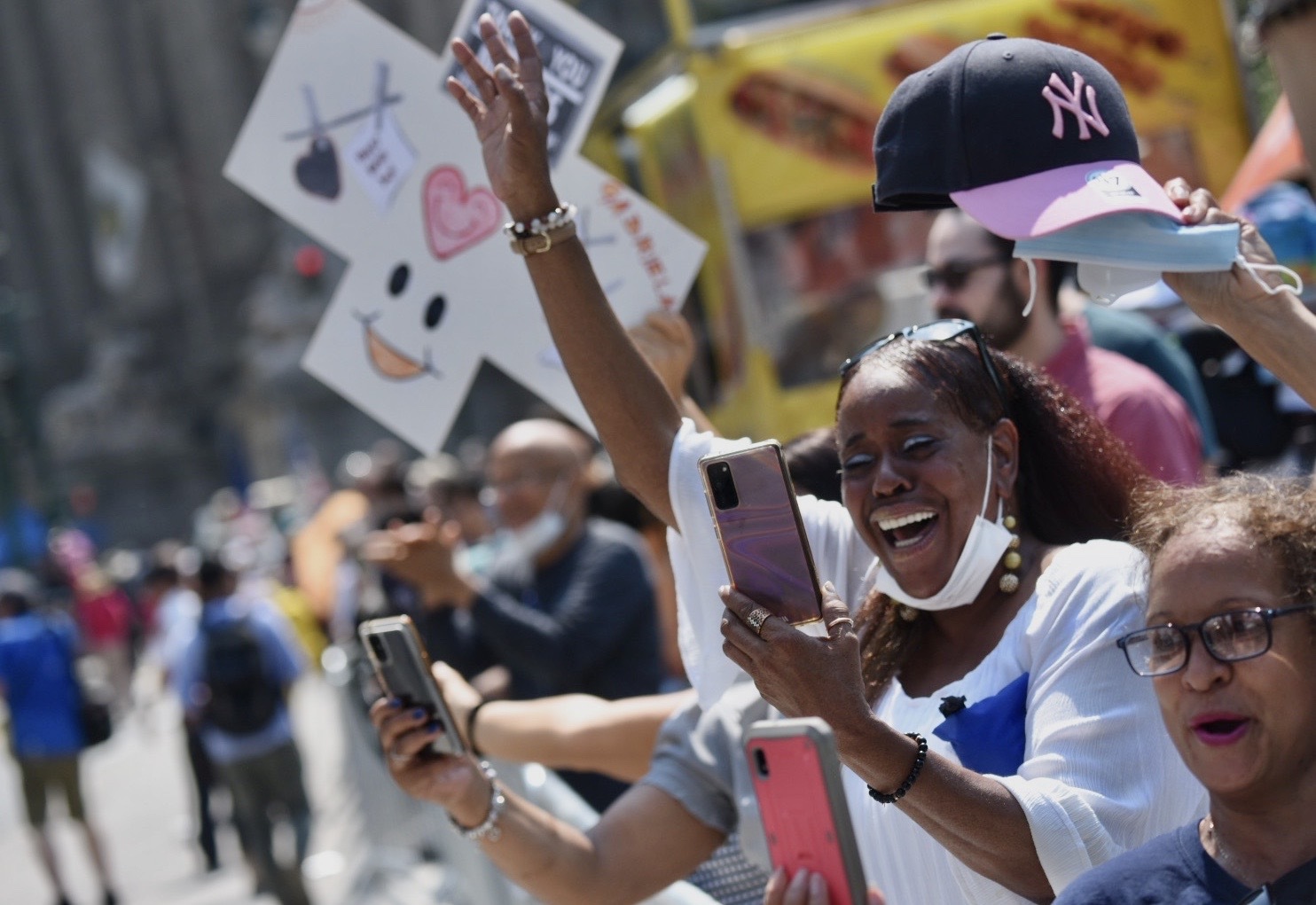 2021年7月7日にマンハッタンで開催されたCOVID-19エッセンシャルワーカーのパレードで応援する人々(Photo: City of New YorkのTwitter(@nycgov))