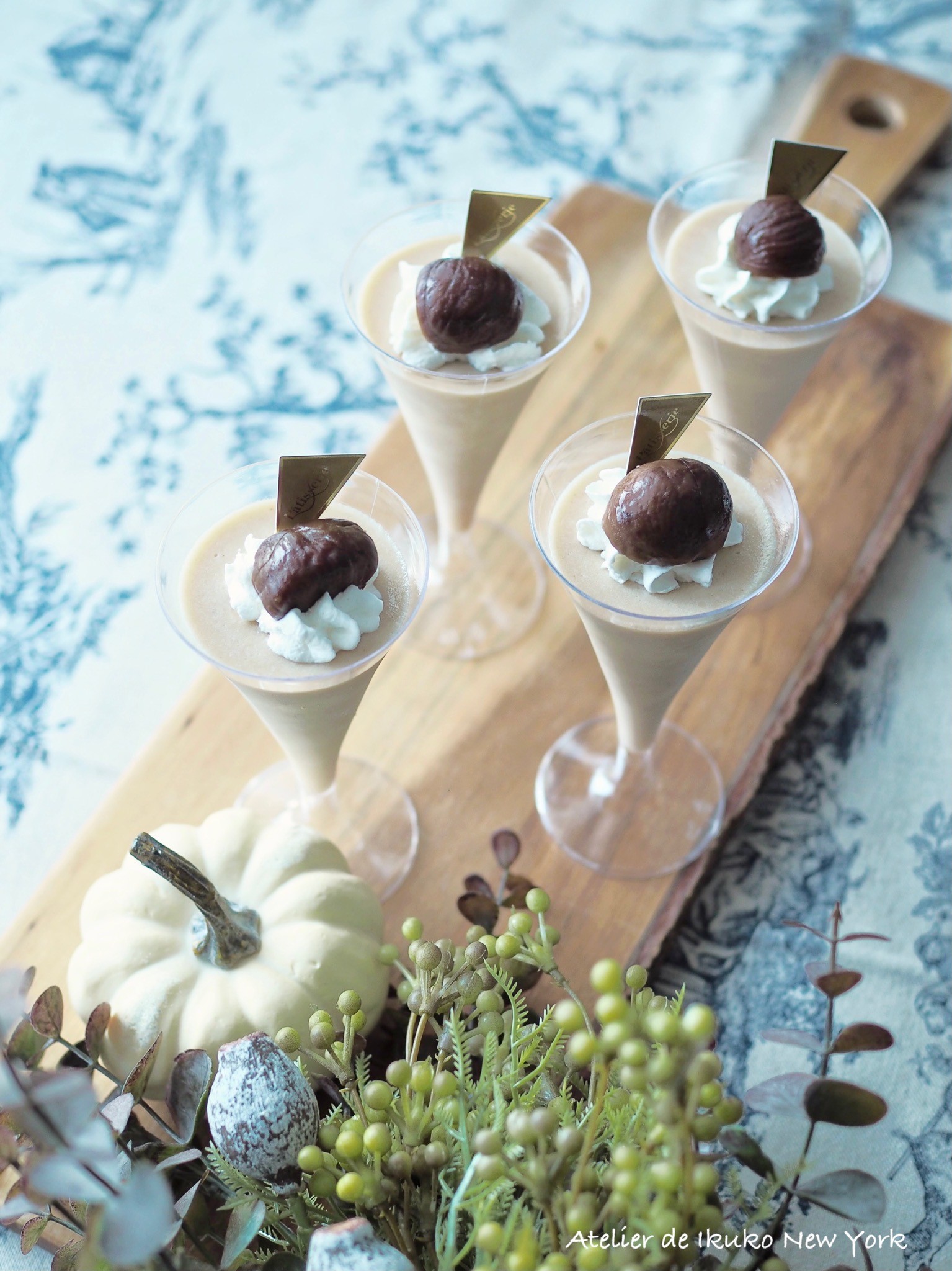 手軽にできておつまみにもピッタリ、そして見た目も可愛いフィンガーフード。今月は秋の味覚の王様、栗でプリンを作ってみましょう。ニューヨークの日本食料品店や日本のコンビニや100均で簡単に手に入る、むき甘栗を使う、とても簡単なレシピです。手土産にしても喜ばれますよ。