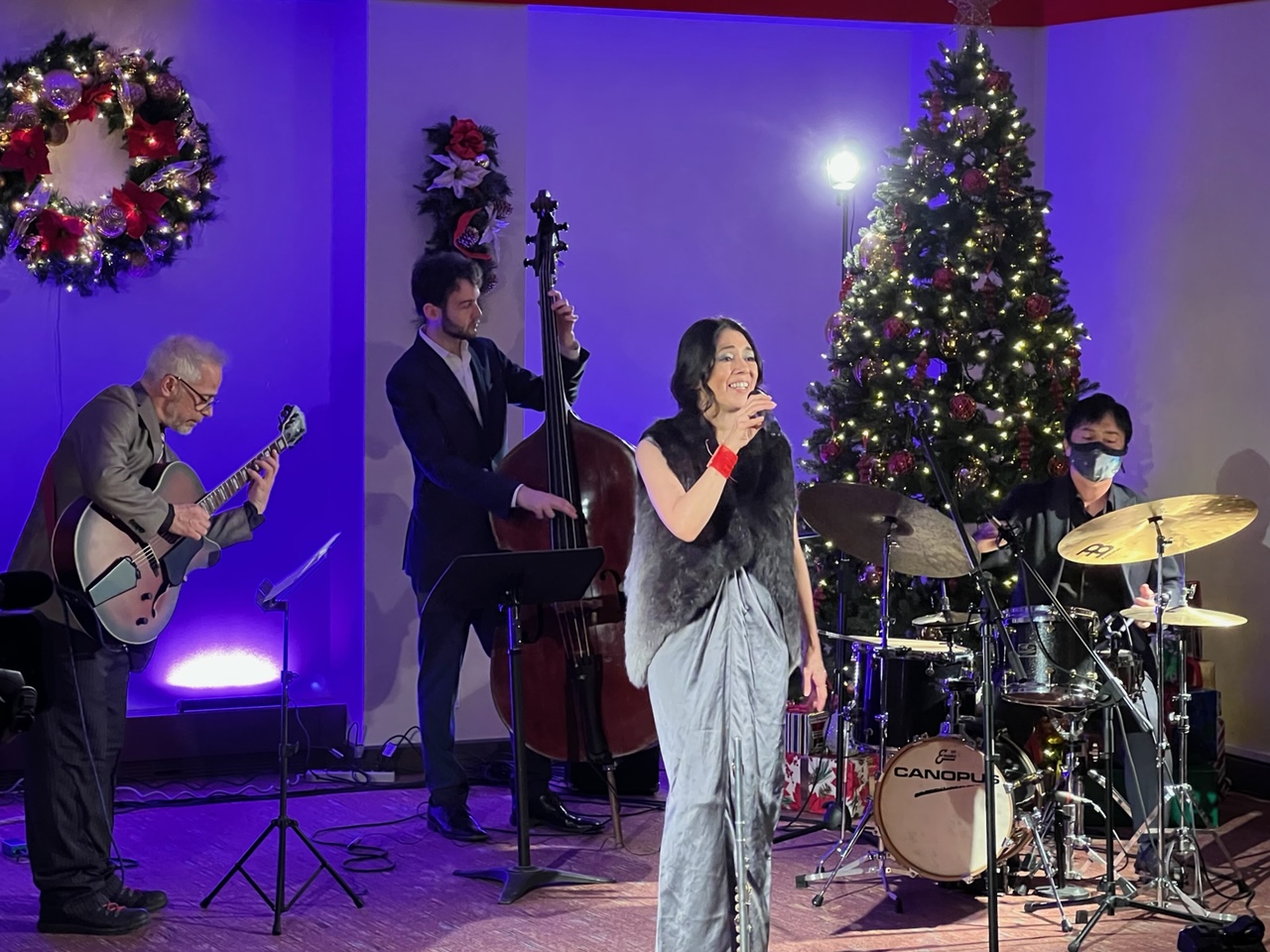 日本クラブはパンデミックの影響で昨年3月に臨時休館、イベントも全て中止となった。今年に入り徐々に活動が再開できるようになり、今回のイベントはコロナ以降初めて日本クラブ会館で開催されたインパーソンイベントとなった。会場からは約50名の参加者がビュッフェと演奏を楽しみ、約70名のオンライン視聴者が事前に受け取った特製弁当を楽しみながら自宅からバーチャル視聴をするという開催形式で、リアルとバーチャルを組み合わせたハイブリッド音楽イベントとなった。
