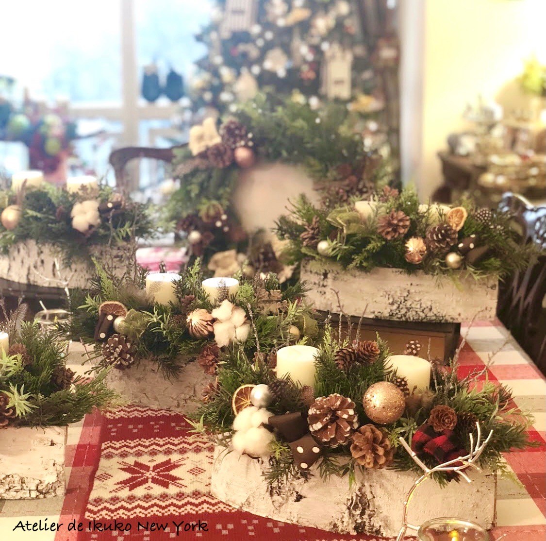 クラスでは、タッセルやティーマット、イースターの卵、クリスマスの時期にはリースやテーブルに飾るセンターピースの作り方を指導しています。写真上からポプリタッセル、クリスマスリースとテーブルセンターピースのアレンジメント