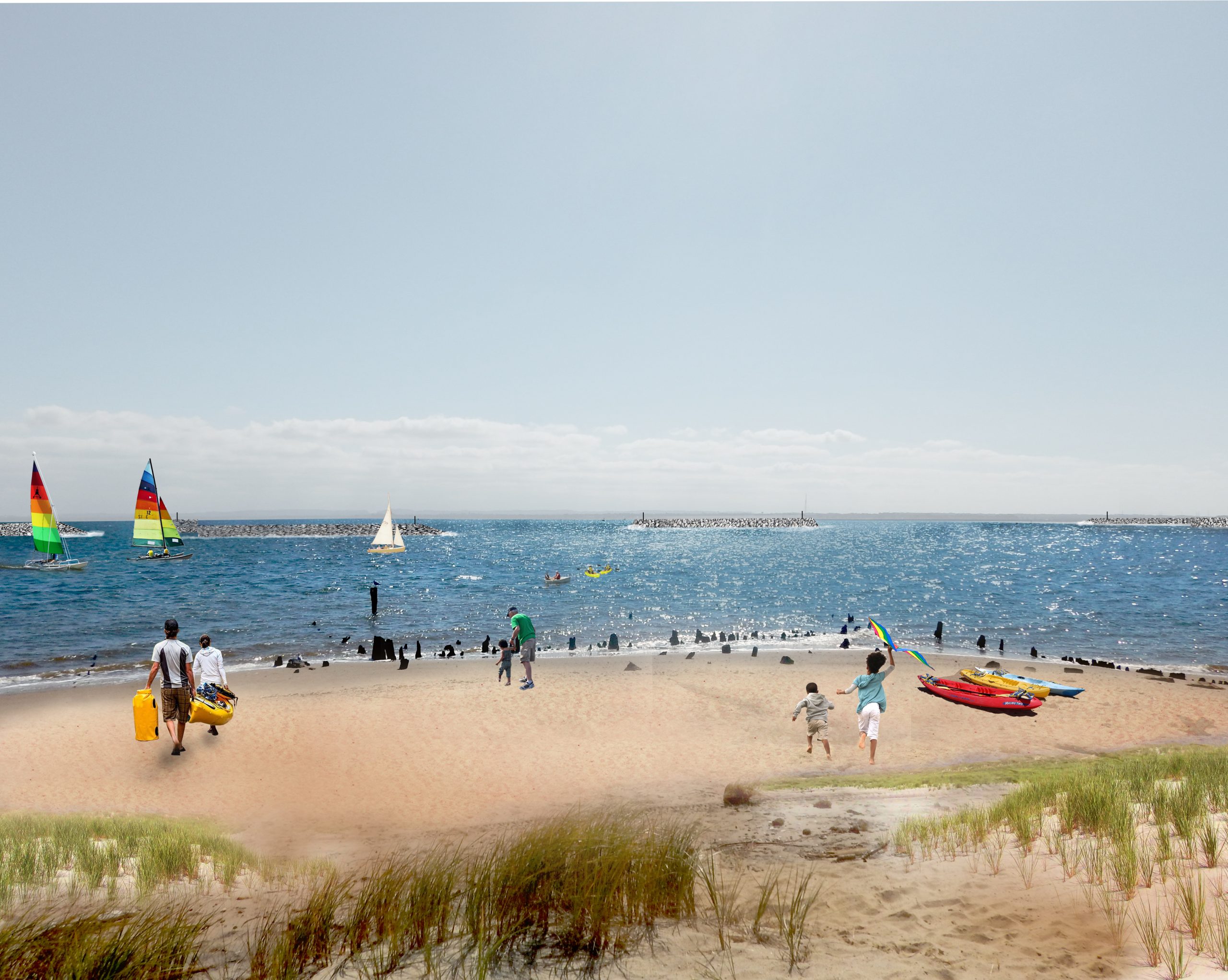 まず9月に、沖合に消波ブロック8つが設置された。消波ブロックは高潮が海岸まで届かないようにすると同時に、破壊された海洋生態系の保全にもつながる。牡蠣繁殖を試みる計画もあり、牡蠣を保護することにもなる。現在は、1100個の岩石で作られた、長さ22フィート、重さ7トンの基底部分を沈め、8つの防波堤のうち、はじめの2つを建設中だ。すべて完成すると1マイルほどの海岸線が修復される。最終的には沖合の浚渫で得た砂2万1000トンを海岸線に広げ、ビーチを補充する計画で、2024年の完了を目指す。