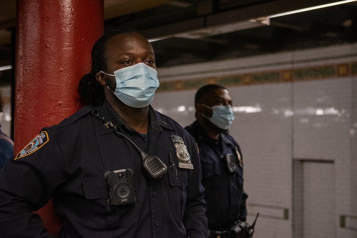 地下鉄の駅車内や構内をパトロースする警官(Photo: NYPDの公式ツイッター(@NYPDTransit)より)