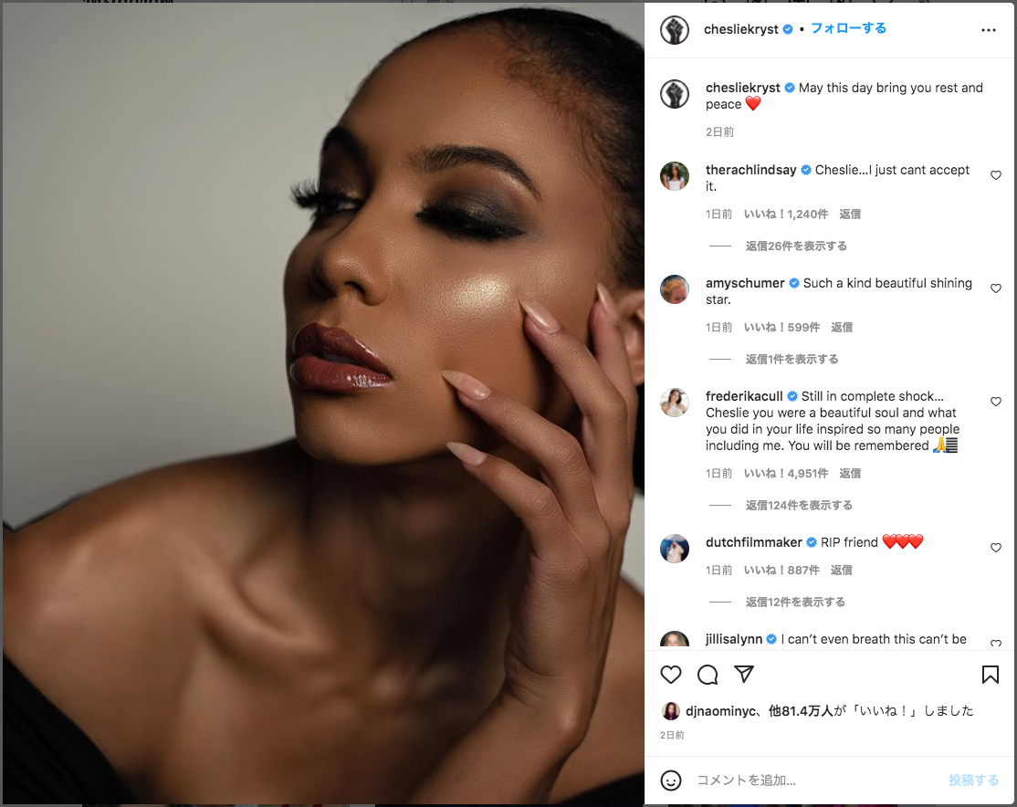 クリストさんは、マンハッタン区西42丁目350番地のオリオンビル9階に居住。30日午前7時過ぎ、道路上で倒れているのが見つかった。29階のテラスに1人でいたのが、最後に目撃されていた。クリストさんは、飛び降りる少し前、インスタグラムに「この日があなたに休息と平和をもたらしますように」と投稿。すべてをノースカロライナ州で暮らす母親に残すとするメモを残していた。メモに自殺の動機は書かれていなかった。