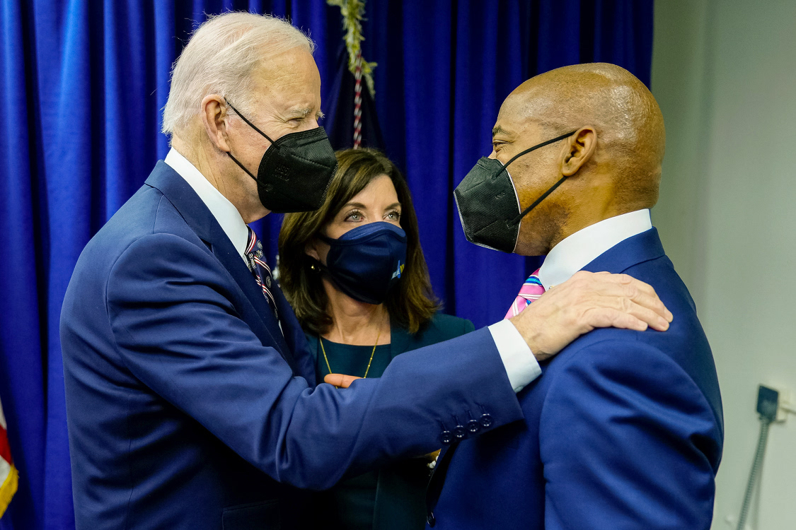 バイデン大統領は3日午前、ジョン・F・ケネディー空港に到着した。シリアで米軍による対テロ作戦があったため遅れ、銃犯罪対策強化を話し合う会議の会場、ローワーマンハッタンの市警本部へ急行した。同日、amニューヨークが報じた。
