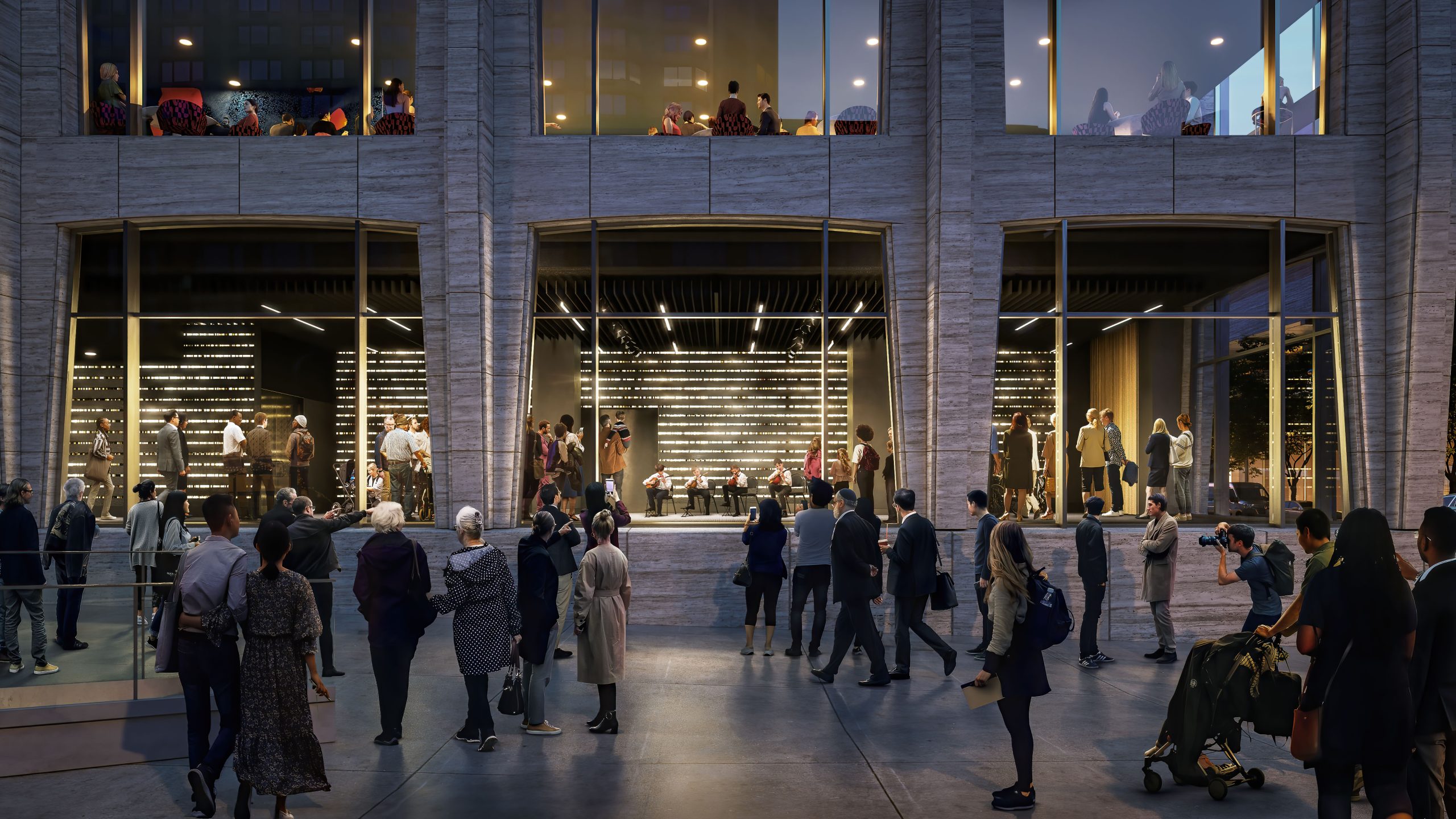 同センターのティムズ社長兼最高経営責任者(CEO)は「ニューヨークの持てる力を結集させて、予定より2年前倒しした」と述べ、「全てのニューヨーカーにインスピレーションを与えるものになる」と加えた。この日の記者会見にはホークル知事とアダムズ市長も出席。アダムズ市長は「教育、経済、精神衛生など、変調をきたしているものが多々ある。芸術を通して調律する時がきた」とコメントした。