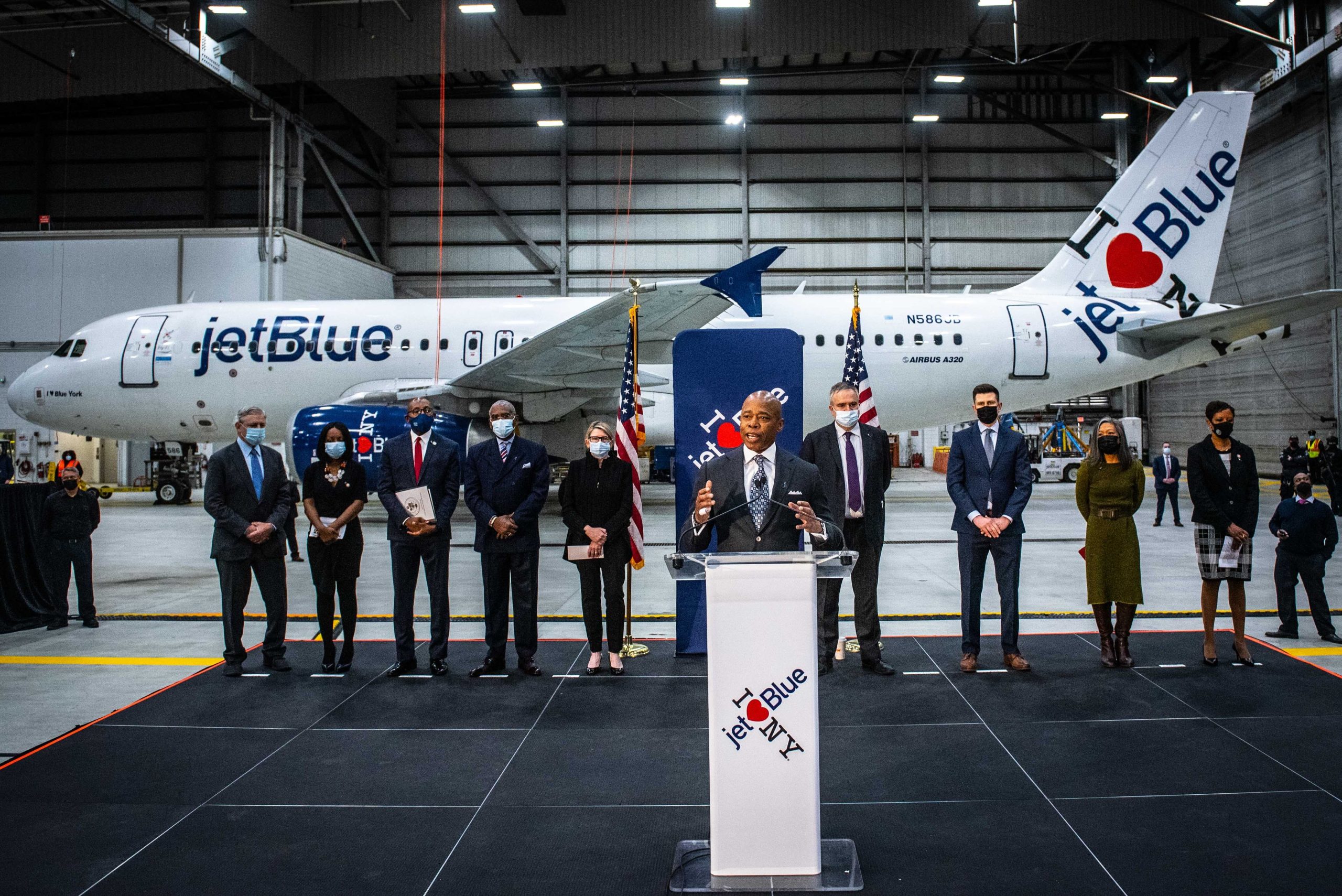 アダムズ市長はジェットブルー航空のヘインズCEOと記者会見を行い、同社が今年中に5000人を新規に雇用すると発表した。28日、ポリティクスNYが報じた。