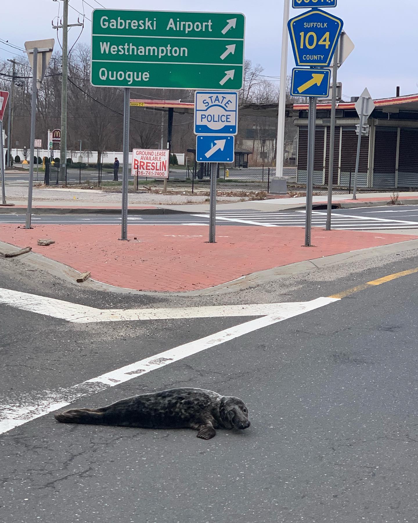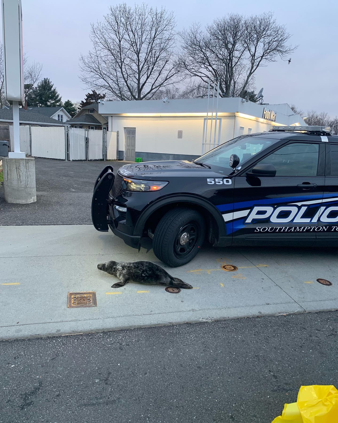 ロングアイランドの駐車場をさまようアザラシの姿を見つけた住民が、サウサンプトン・タウン警察に通報。アザラシは近くのホテルの入り口に向かって進み、ロータリー交差点に入った。駆けつけた警官によって保護されたアザラシは、ニューヨーク海洋資源センターのチームに引き渡され、リバーヘッドにあるリハビリテーションセンターに搬送された。アザラシの状態は、良好だという。警察によると、アザラシは、魚の群れの後を追ってペコニック川を泳いで上ってきたものとみられている。