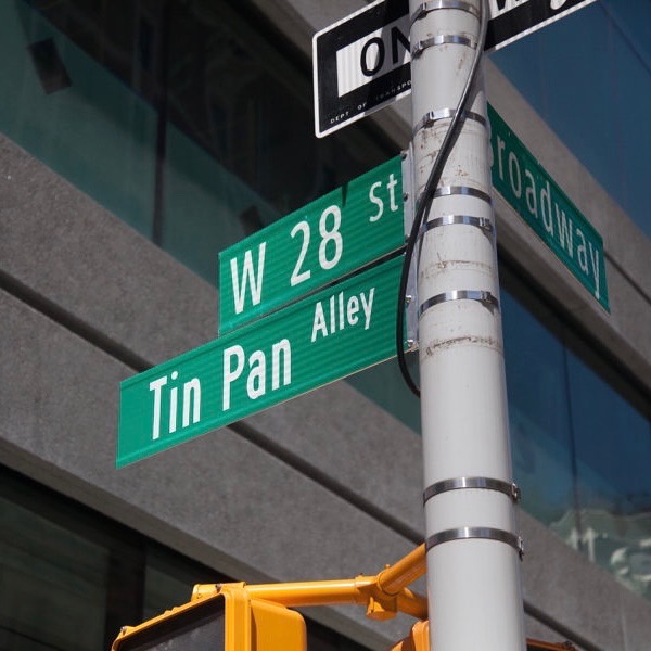 19世紀末から20世紀にかけ、この辺りには音楽関係の出版社が多く存在。かつて作曲家、作詞家や歌手が頻繁に出入りした、米国のポピュラー音楽の発祥地として知られている。「ティン・パン・アレー」の名前の由来は、この付近を歩いた時に聞こえた、異なる曲を演奏するピアノのコーラスが立てる騒々しさを、路地でフライパンを叩く音になぞらえてつけられた。