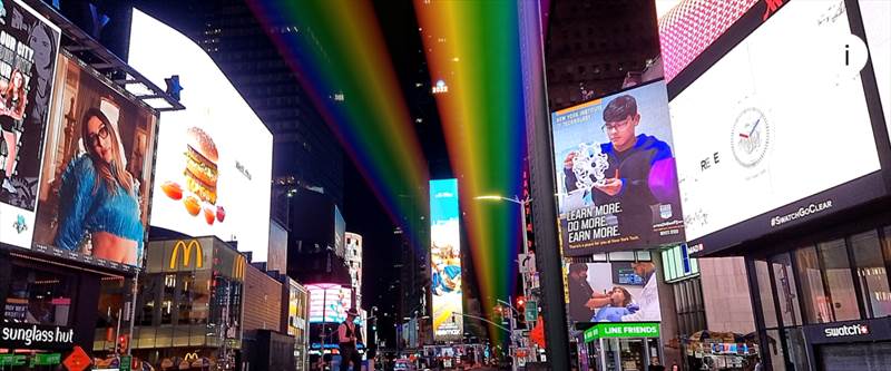 6月はプライド月間。ニューヨーク市内の随所にレインボーフラッグがお目見えしており、26日には恒例のプライドパレードが5番街を中心に開催される。タイムズスクエアには、AR(拡張現実)を生かしたレインボーのアート「Polar Rainbow」が登場した。1日、タイムアウトが報じた。