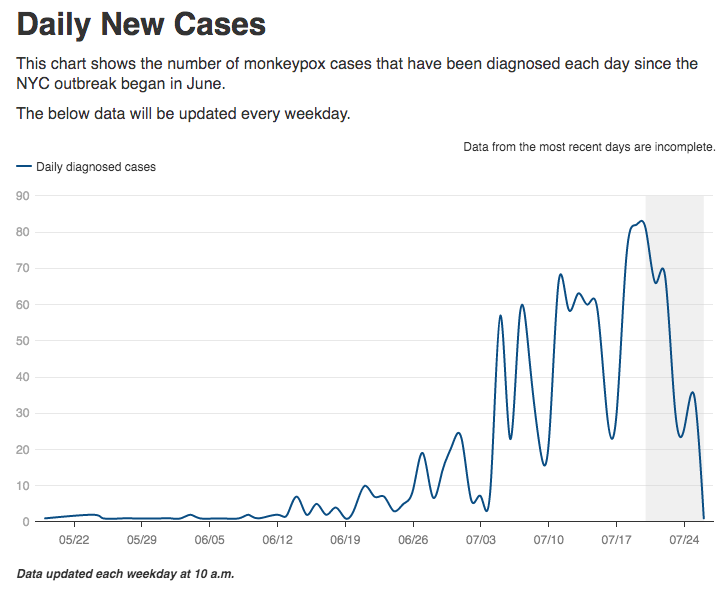 市内では同日、1,251人がサル痘検査に陽性反応を示した。州全体では1,341人。全米では約4900人の感染が確認されている。ニューヨークのホークル知事は「米国内感染者の約4分の1はニューヨーカー。特に性的少数者のコミュニティーが最も深刻な影響を受けている」とは指摘。「連邦政府に働きかけ、割合に見合ったワクチン数確保を目指す」と続けた。宣言によって、地域の保険当局は州から費用弁済を受けることが可能になる。