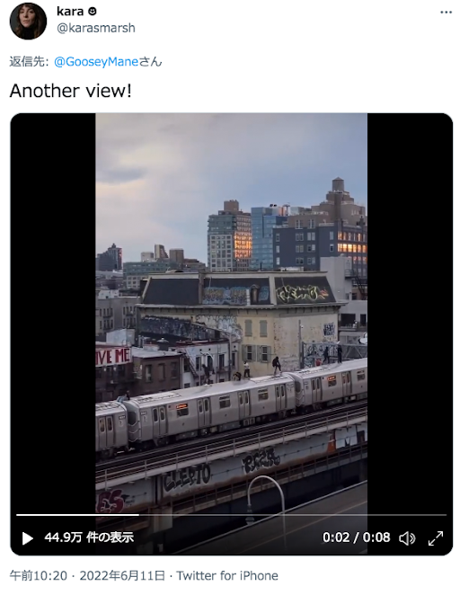 先週、地下鉄に乗っていたブルックリン区在住の男性は、8人ほどの少年たちが車両の上によじ登るのを目撃した後、車両の上から届く足音を耳にした。男性は「信じられないような愚かな行動を見るのは悲しい」と話した。