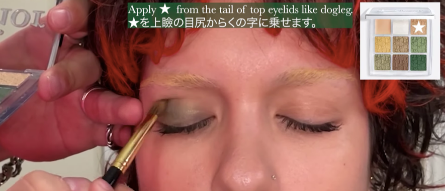 ① スモーキーな9のグリーンを上瞼のキワに乗せる