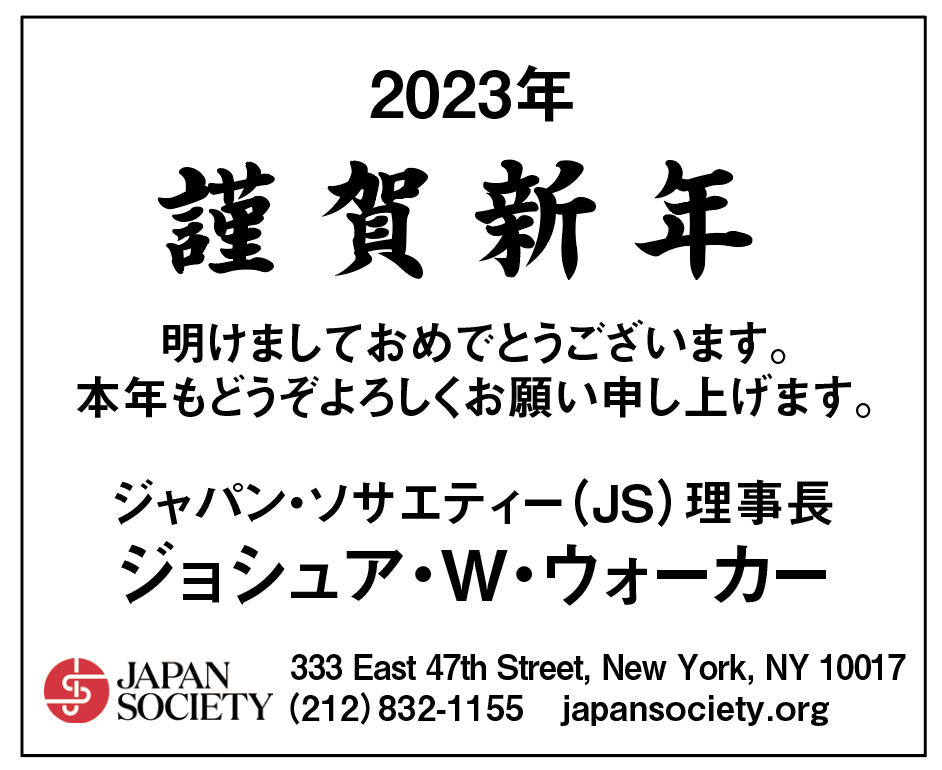弊会の日本の芸術、文化、ビジネス、社会をニューヨーク及び世界中の人々とつなぐという役割から、今年はさらに日本との協力関係を強化し、互いの持つ良さを最大限に発揮できる年になるよう努めて参る次第です。また、日米両国、世界が新型コロナウイルスのパンデミックから脱却し、世界を再構築するために非常に重要な年になることを願っています。