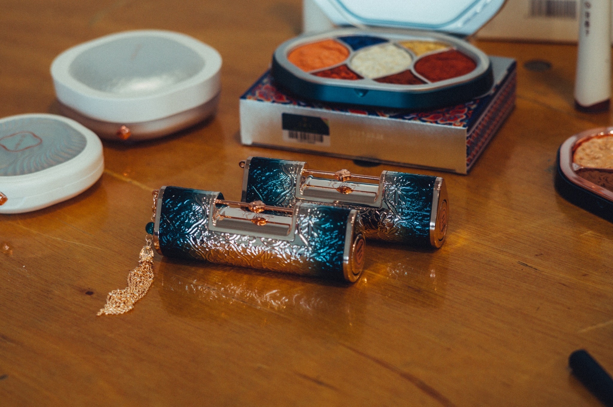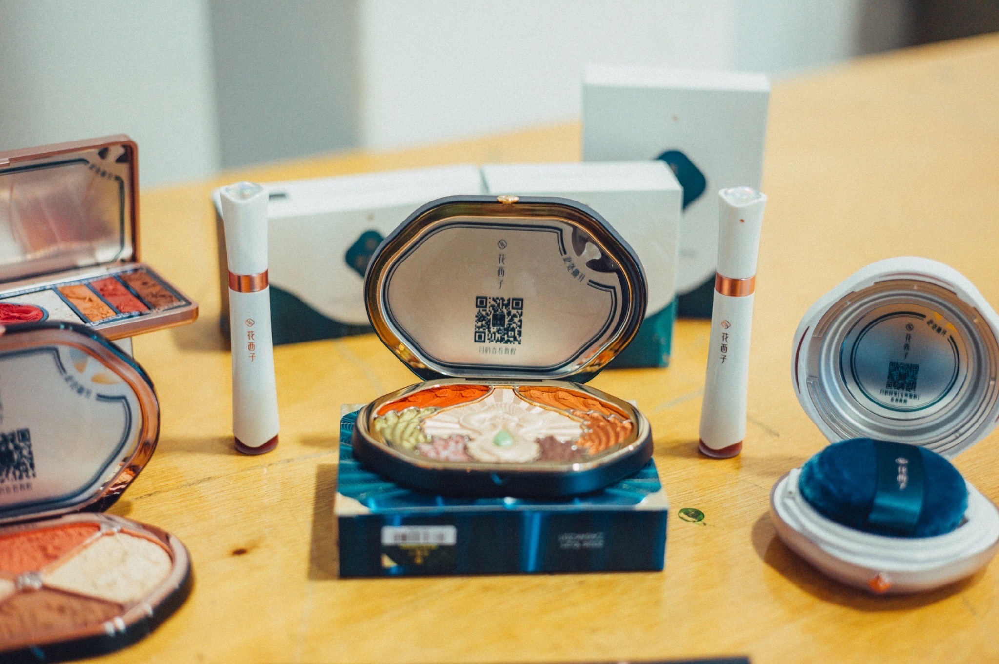 今回のショーのスポンサーは中国のコスメブランドFlorasis(花西子)。「花で美しくなる」をコンセプトに、伝統技術と独自の美学に基づきつくられているアイシャドウは、まるで彫刻のように美しい。