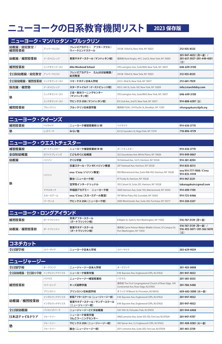 ニューヨークの日系教育機関リスト 2023