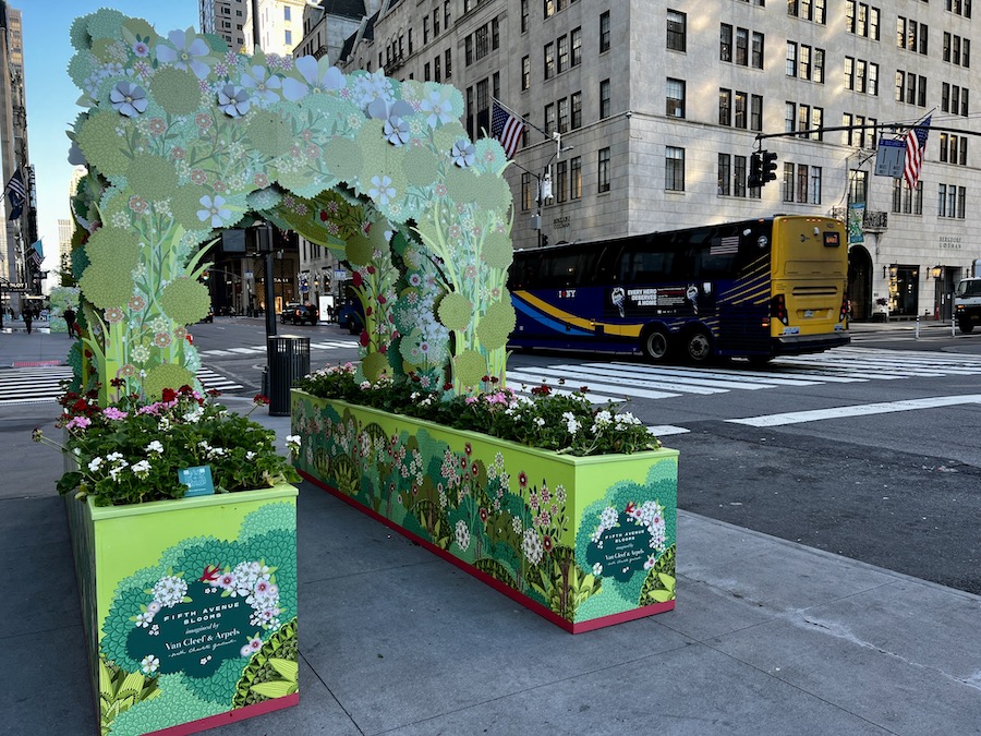 5番街の50~59丁目の歩道に、花をモチーフにしたオブジェ、フィフス アベニュー ブルームが登場。
