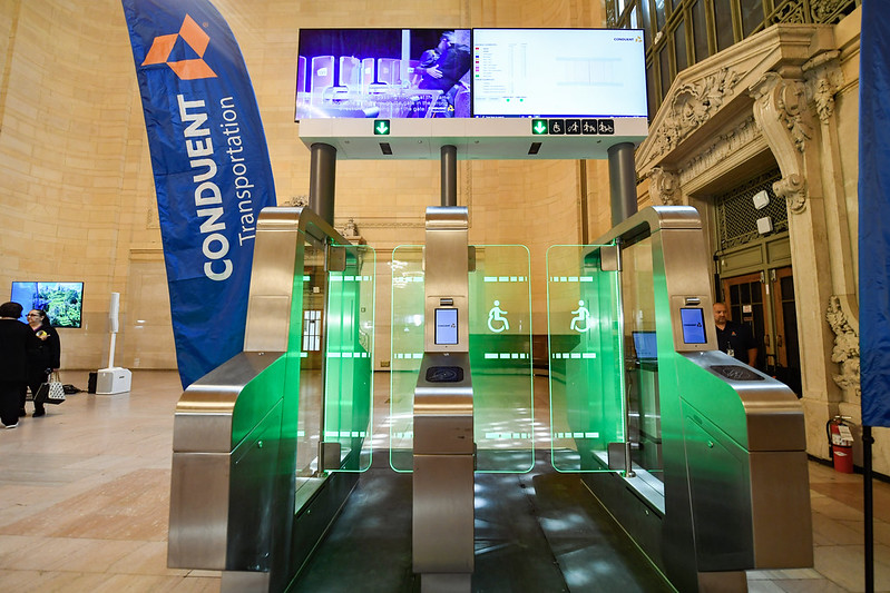お披露目された新型改札(MTAの公式Flickrより / Photo: Marc A. Hermann / MTA / https://flic.kr/p/2oB6w3R)