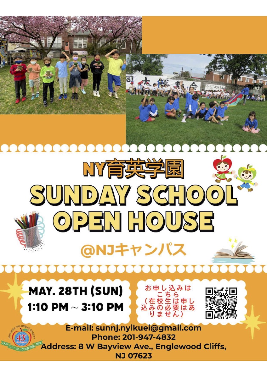 ニュージャージー州イングルウッドクリフスにある育英サンデースクールでは、5月28日(日)にオープンハウスを行う。学園に興味がある、編入や入園・入学を考えている家庭に対し、実際の学園施設や保育・授業を対面で見られるイベントとなっている。