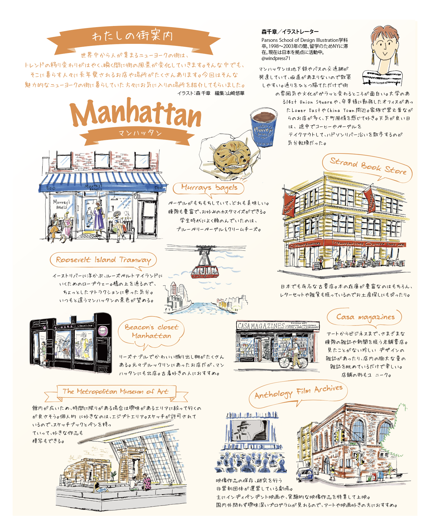 世界中から人が集まるニューヨークの街は、 トレンドの移り変わりがはやく、瞬く間に街の風景が変化していきます。そんな中でも、そこに暮らす人々に長年愛されるお店や場所がたくさんあります。今回はそんな 魅力的なニューヨークの街に暮らしていた方々にお気に入りの場所を紹介してもらいました。