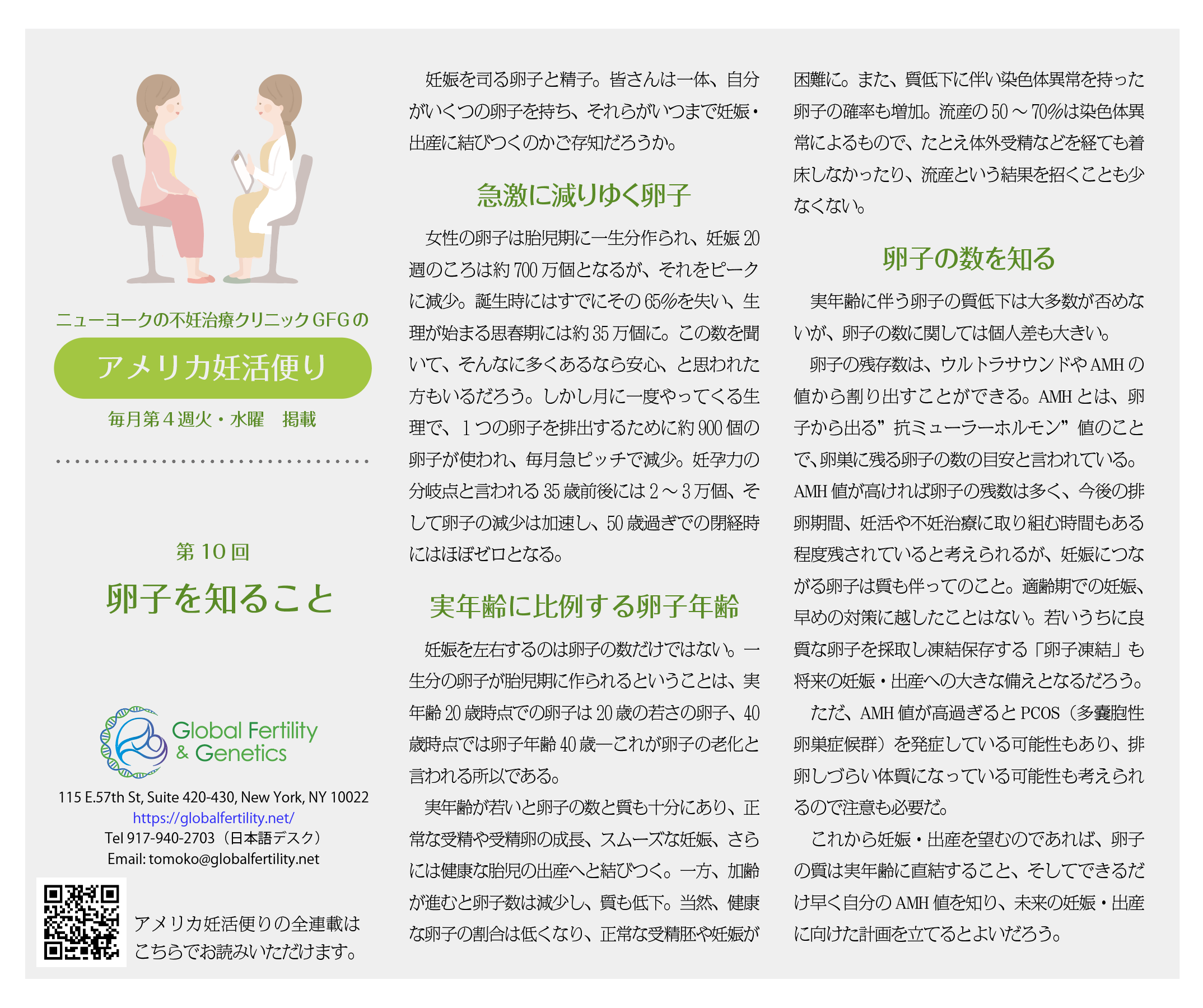 これから妊娠・出産を望むのであれば、卵子の質は実年齢に直結すること、そしてできるだけ早く自分のAMH値を知り、未来の妊娠・出産に向けた計画を立てるとよいだろう。
