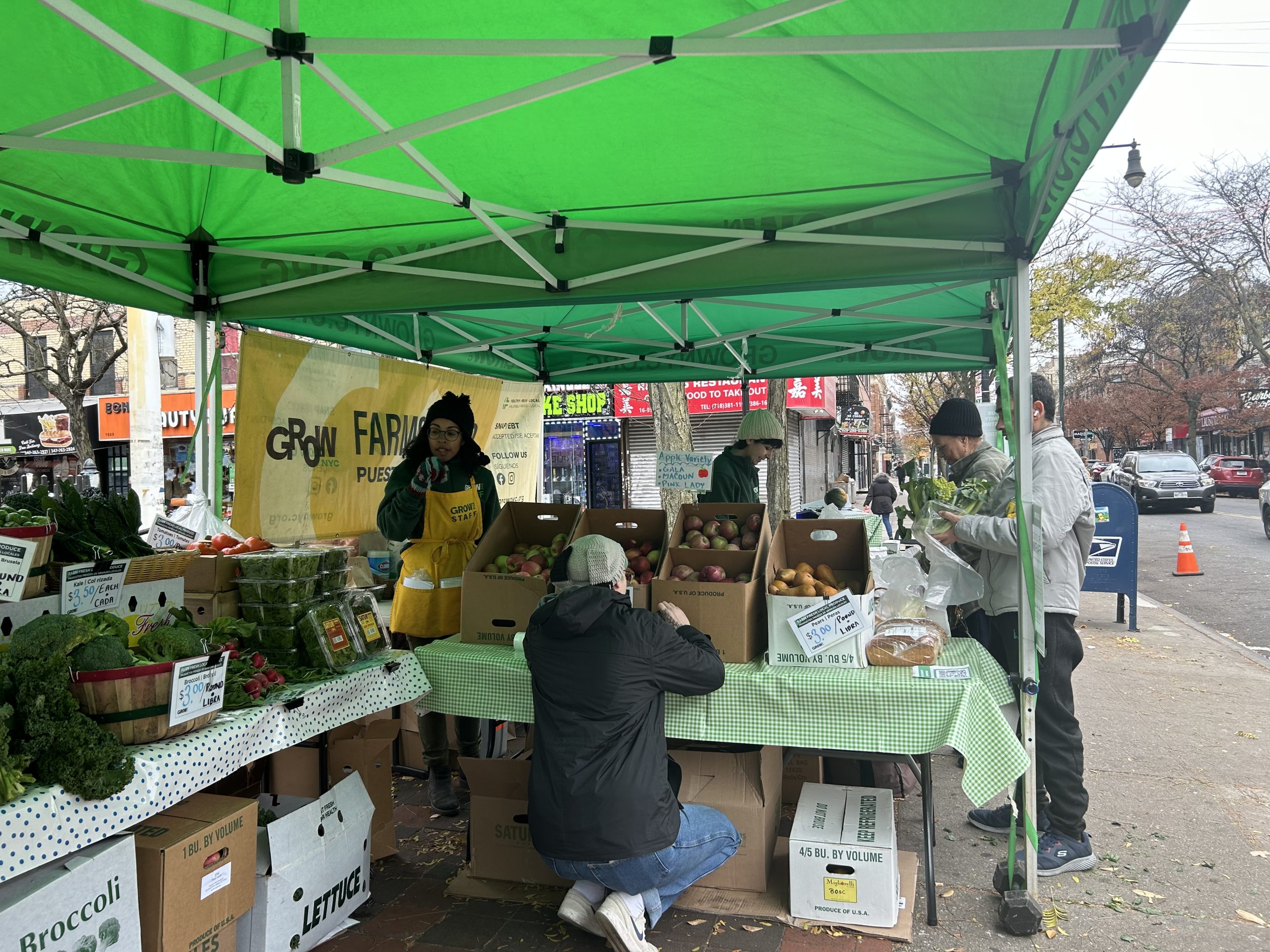 グリーンマーケットでも農家ボランティアが積極的に会話する。