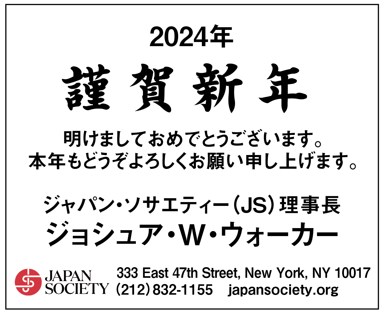新年のお祝いを申し上げます ジャパン・ソサエティー(JS) 理事長 ジョシュア・W・ウォーカー