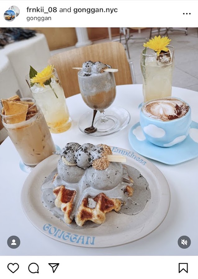 「Gong Gan」クイーンズ区フラッシングの韓国系デザート・ショップ。お菓子のキノコがのった紅茶チーズケーキや超特大のクイニーアマンなど、カラフルなデザートで人気。