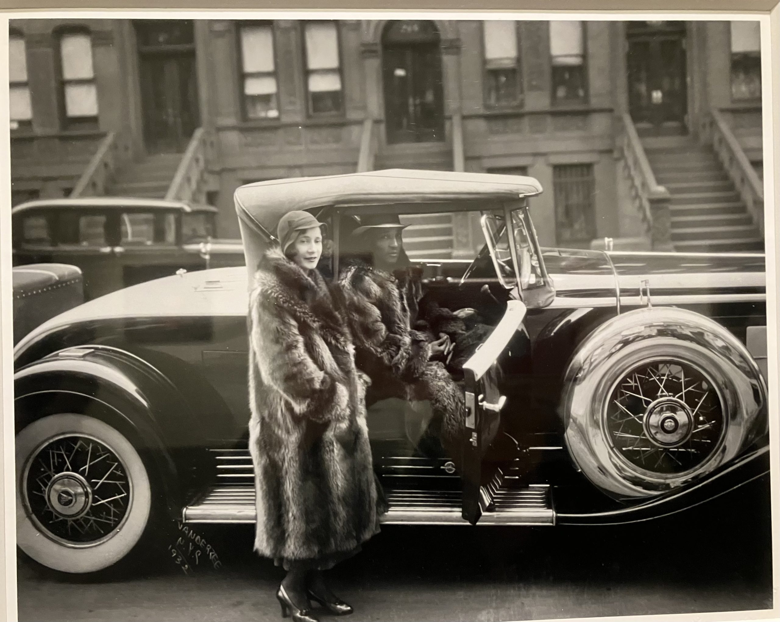 スタジオ写真家は、ポートレート、祝いの場、冠婚葬祭を撮影するとともに、日常生活を記録し続けた。この写真では「毛皮のロングコートにスタイリッシュな帽子をかぶったエレガントな若いカップルが、キャデラックV-16限定モデル車の横でポーズをとっている」一部の黒人たちの新しい物質主義と上昇志向を表している。1969年に開催された第1回目の特別展『ハーレム・オン・マイ・マインド』ではヴァン・デア・ジーの写真が多く展示された。
